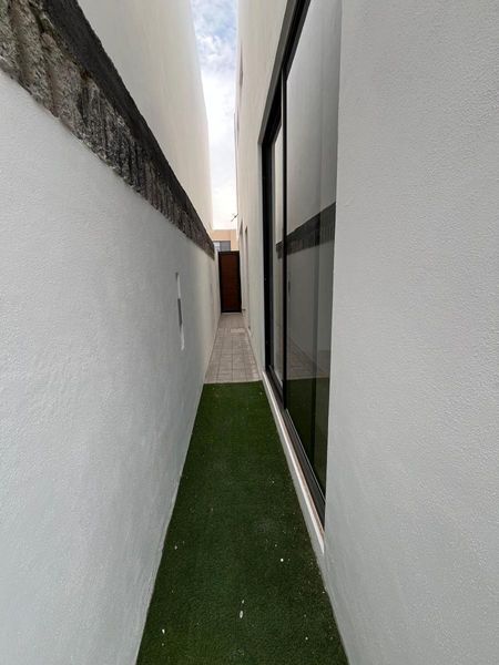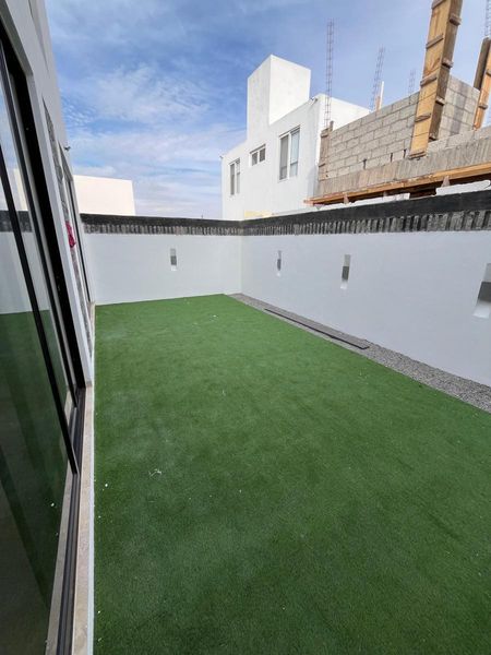 Jardín amplio con pasto sintético